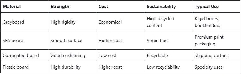 Greyboard vs Other Packaging Boards